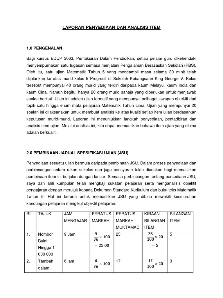 Laporan Penyediaan Dan Analisis Item Pdf